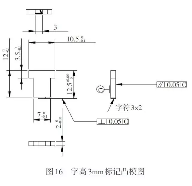 ①當標記16個字符(16×1-3×2)即1排16個字符,字高3mm,字寬2mm時,尺寸要求:圖9凸面區域尺寸≥10×43mm,圖9凹面區域尺寸≥20×73mm。