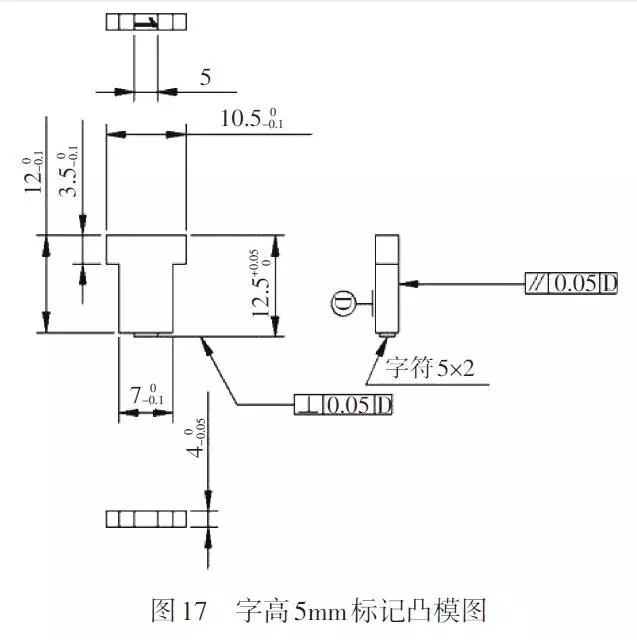 ③當標記4個字符(4×1-5×2):即1排4個字符,字高5mm,字寬2mm時,尺寸要求:圖9凸面區域尺寸≥10×27mm,圖9凹面區域尺寸≥20×57mm。