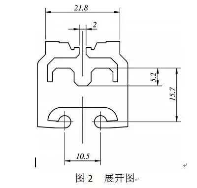 圖1為沖壓件的零件圖,材料為10鋼板,料厚δ=1mm。圖2為沖壓件展開圖形。